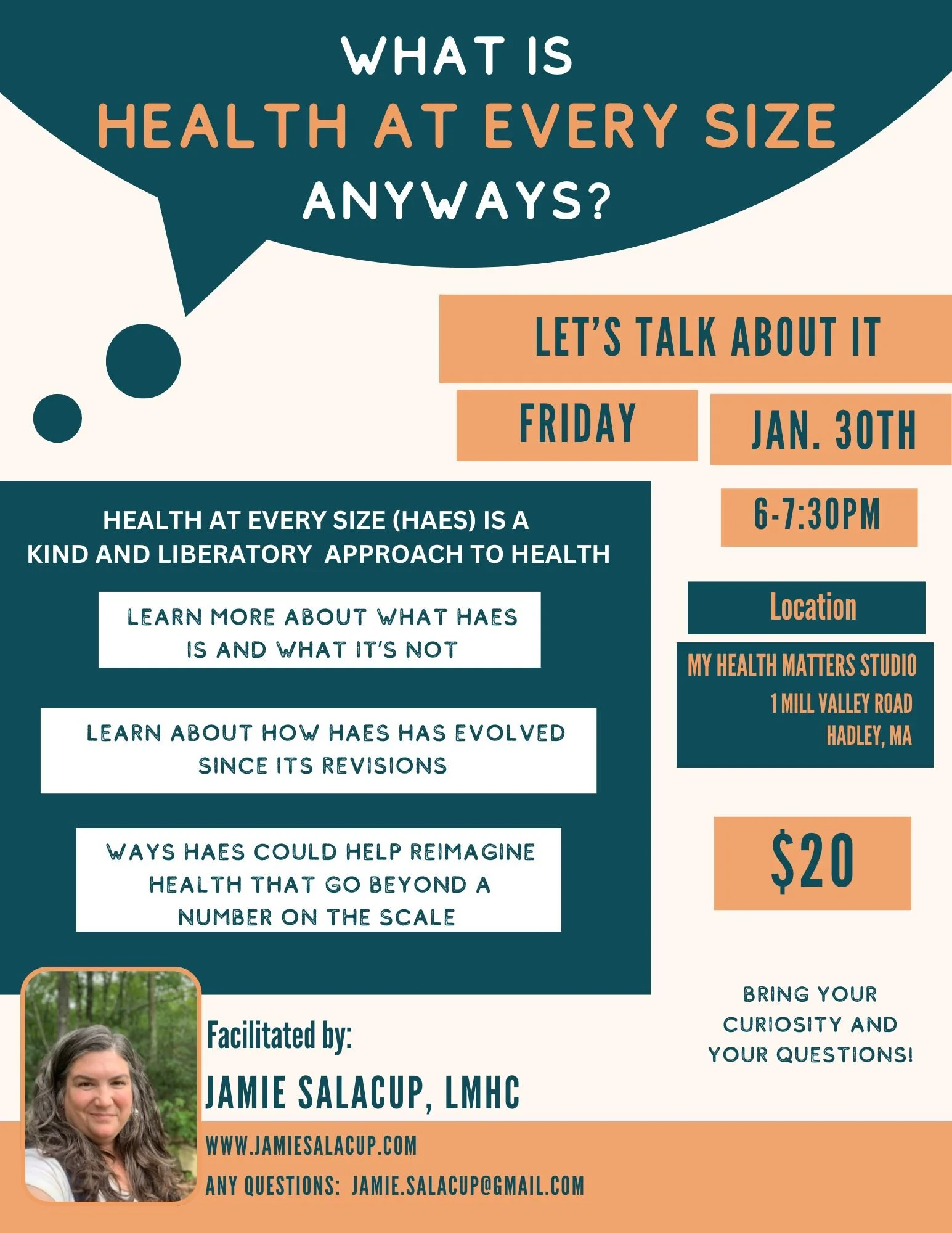 Facilitated by local therapist Jamie Salacup, LMHC who has been working with Health and Every Size personally and professionally for over 15 years